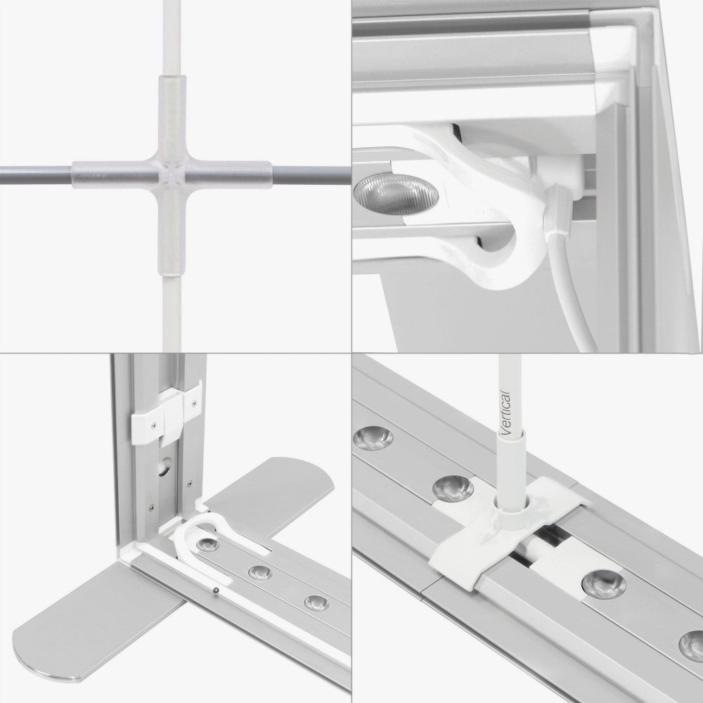 • Slim aluminum hardware for sleek appearance